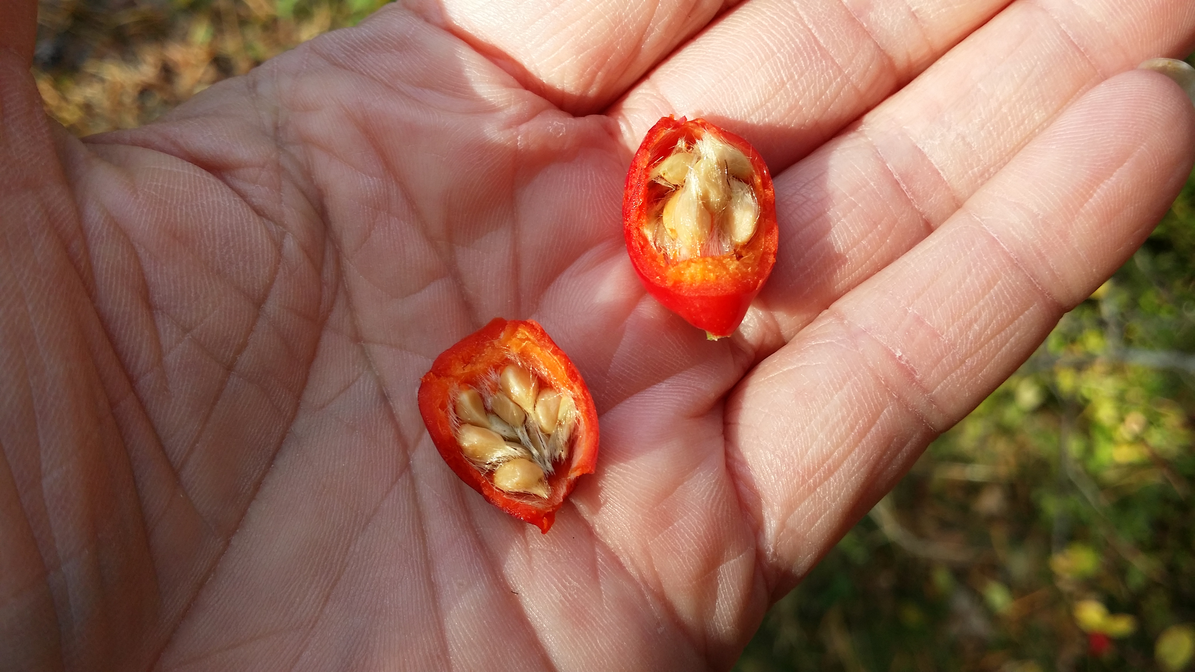 Orjanruusulla on kaksi alalajia, himmeäorjanruusu (ssp. coriifolia) ja heleäorjanruusu (ssp. dumalis), joista himmeäorjanruusun lehdykät ovat alta karvaiset ja heleäorjanruusulla kaljut. Bongaamastani kasvista ei kuitenkaan bongausajankohdan myöhäisyyden vuoksi ollut mahdollista määrittää alalajia. Toiseksi viimeisessä kuvassa halkaistu kiulukka.